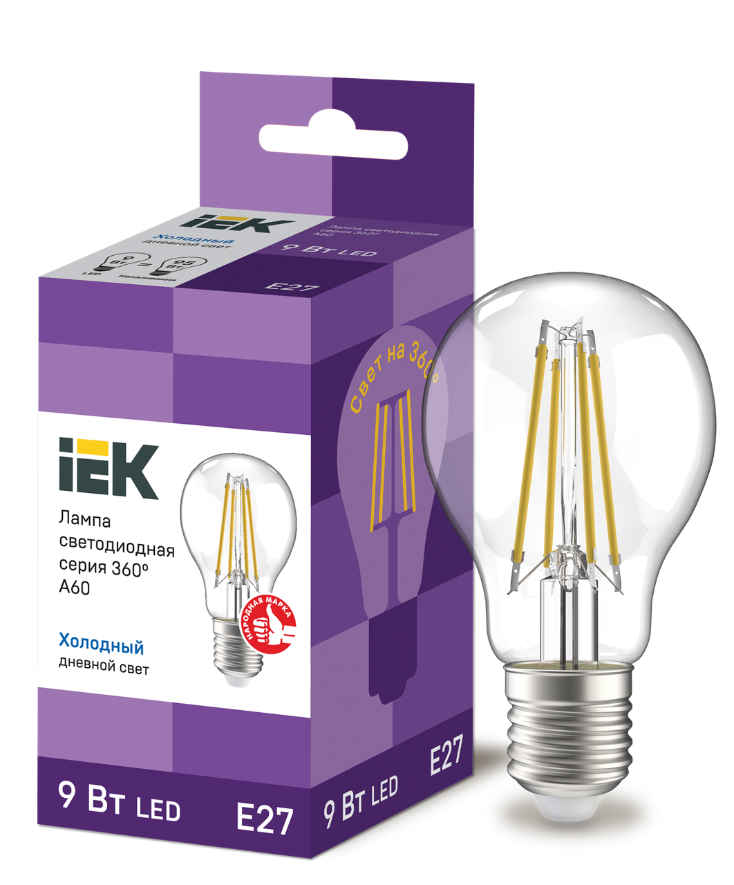 / Лампа LED A60 шар прозрачный 9Вт 230В 4000К E27 серия 360° ИЭК LLF-A60-9-230-40-E27-CL